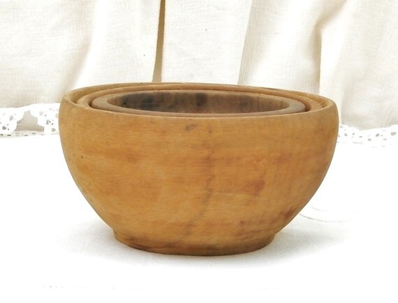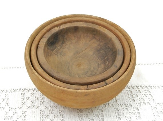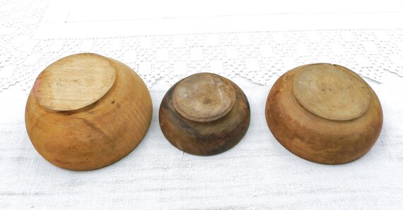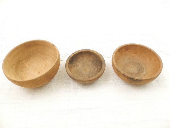 20% OFF coupon on Antique Nest of 3 Different Wooden Bowls, Oak Walnut and Fruit Wood Turned Wood Vessels, French Country Farmhouse Cottage Rustic Decor by VintageDecorFrancais