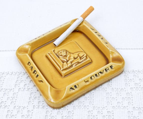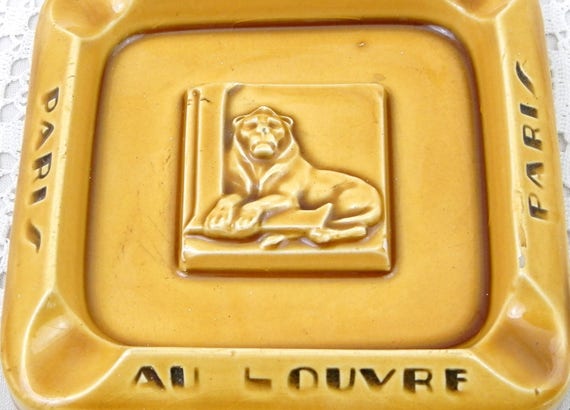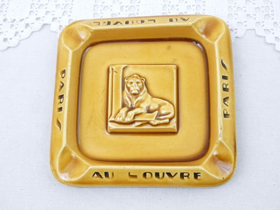 20% OFF coupon on Antique Publicity Yellow Ceramic Ashtray for the Shop "Grand Magasin du Louvre" in Paris with a Lion Motif, Retro Parisian Home Decor by VintageDecorFrancais