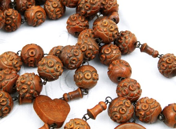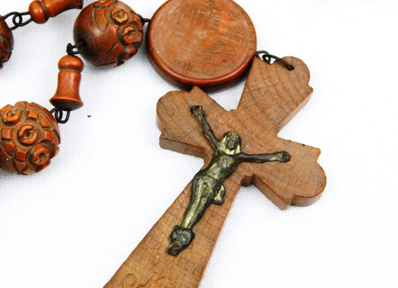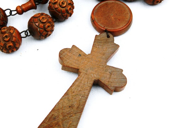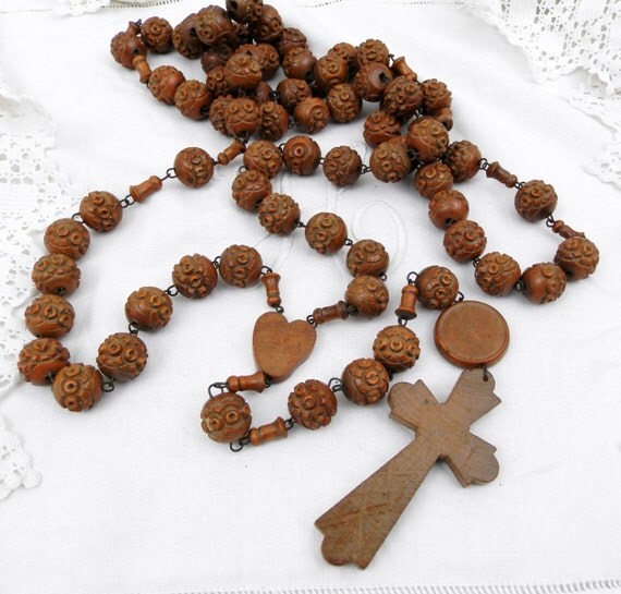20% OFF coupon on Antique Religious French Large and Long Rose Wood Rosary Carved Beads, French Decor, French, Vintage, Religion, Catholic Crucifix Jesus by VintageDecorFrancais