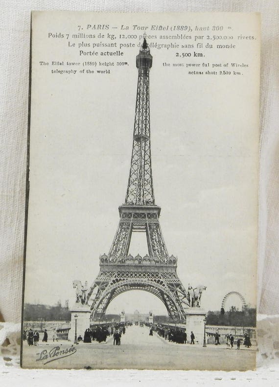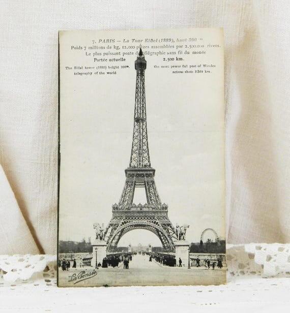 20% OFF coupon on Antique Unused French Black and White Postcard of the Eiffel Tower in Paris, Wireless Tower, French Decor, Vintage Parisian Decor, Shabby by VintageDecorFrancais