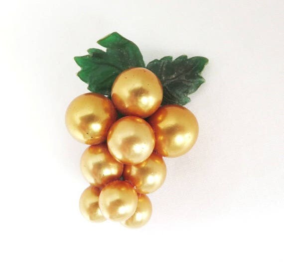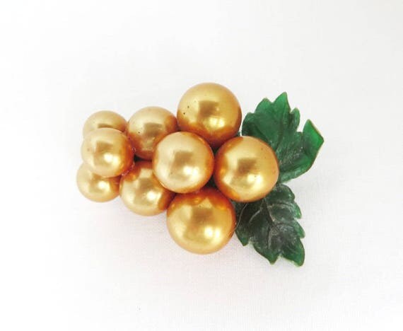30% OFF coupon on Art Deco Berries Brooch, Vintage Gold Berry Celluloid Pin, Perfect Gift, Gift Box by LeesVintageJewels