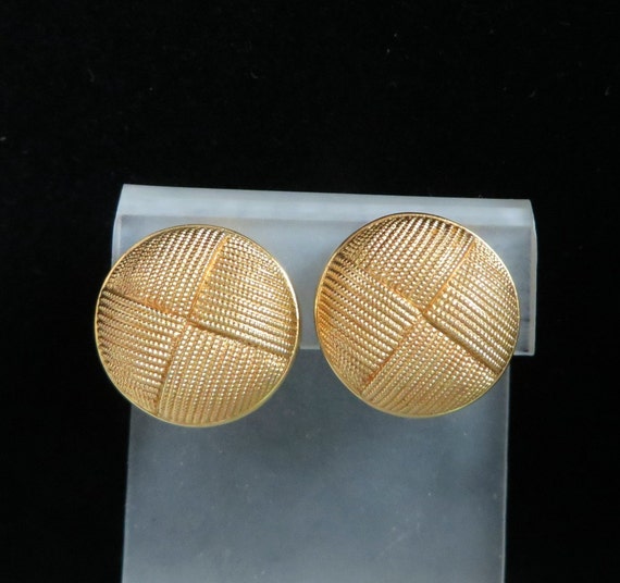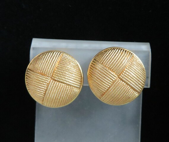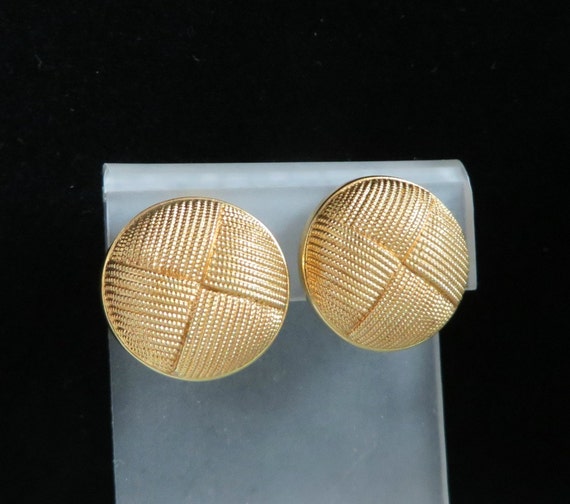 20% OFF coupon on AVON Button Earrings, Vintage Gold Tone Tailored Earrings, Basketweave Clip-on Earrings by LeesVintageJewels