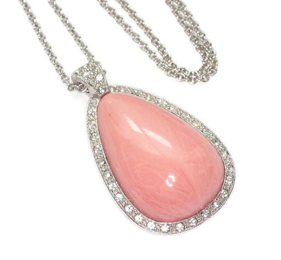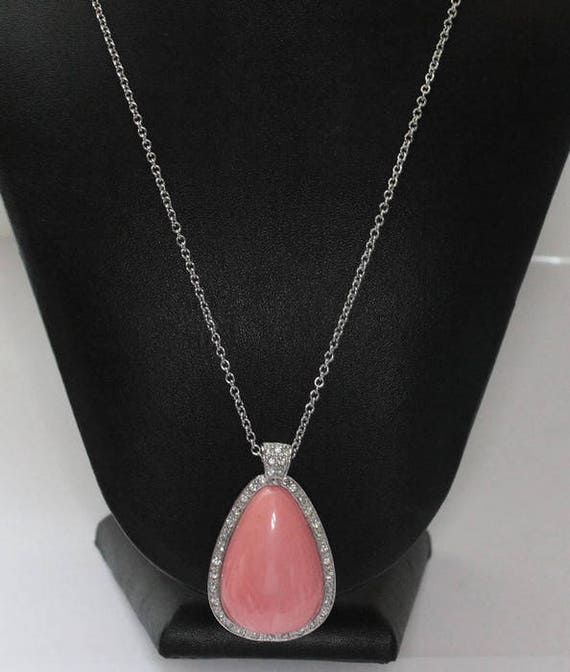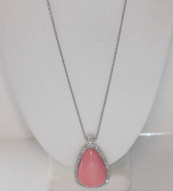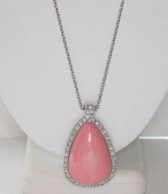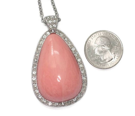15% OFF coupon on Avon Pale Fire Pendant Necklace Faux Coral Rhinestones Silver Tone 1974 by PastSplendors