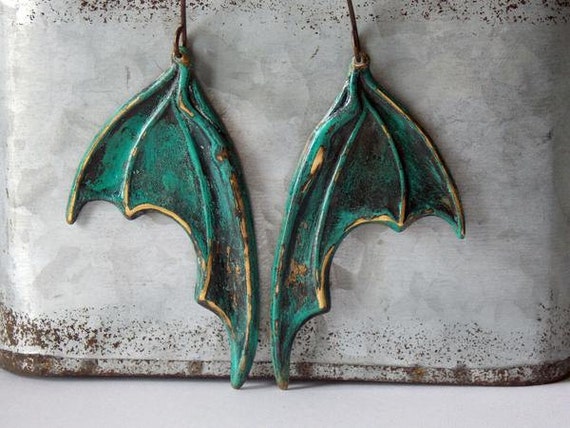 FREE SHIPPING coupon on Bat Wing Earrings Dragon Wing Earrings Brass Halloween Distressed Wing Gothic Jewelry Goth Earrings Batman Vampire Spooky All Hallows Eve by NickiLynnJewelry
