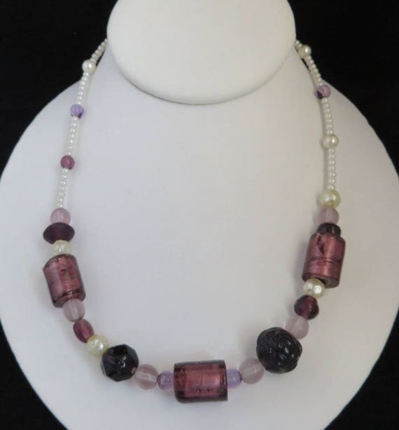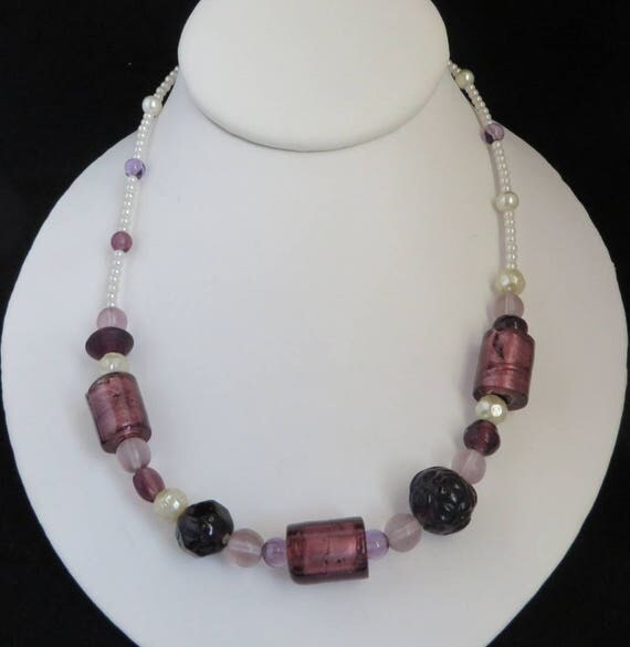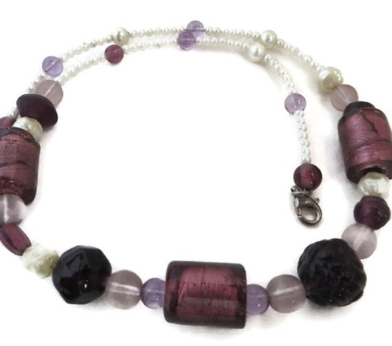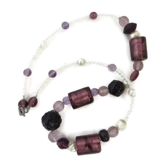 15% OFF coupon on Beaded Necklace, Vintage Purple Bead Neckace, Chunky Faux Pearl Black, White Boho Jewelry, Mother's Day Gift for Her by LeesVintageJewels
