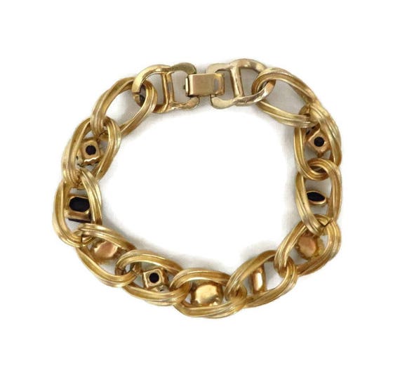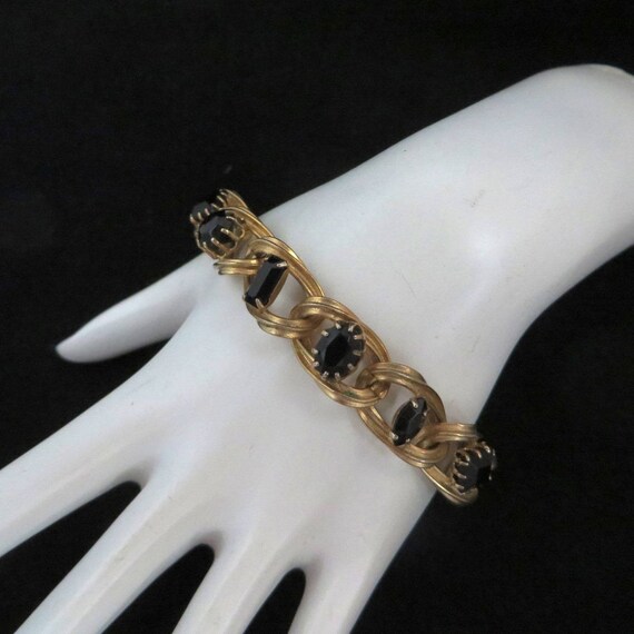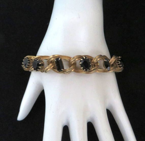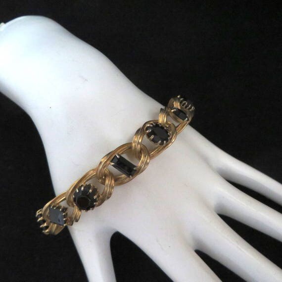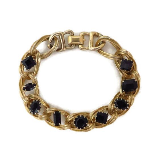 15% OFF coupon on Black Rhinestone Bracelet - Vintage Gold Tone Chain Link Bracelet, Gift for Her by LeesVintageJewels