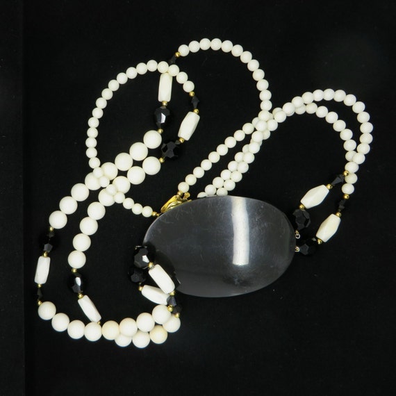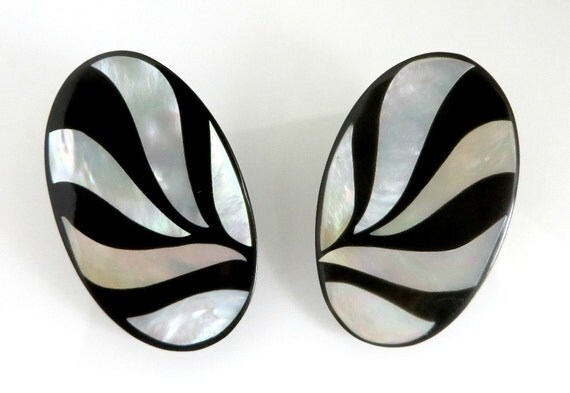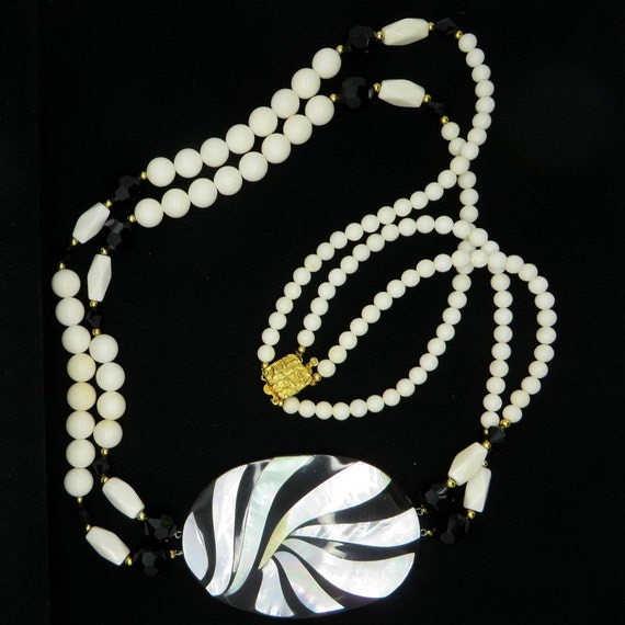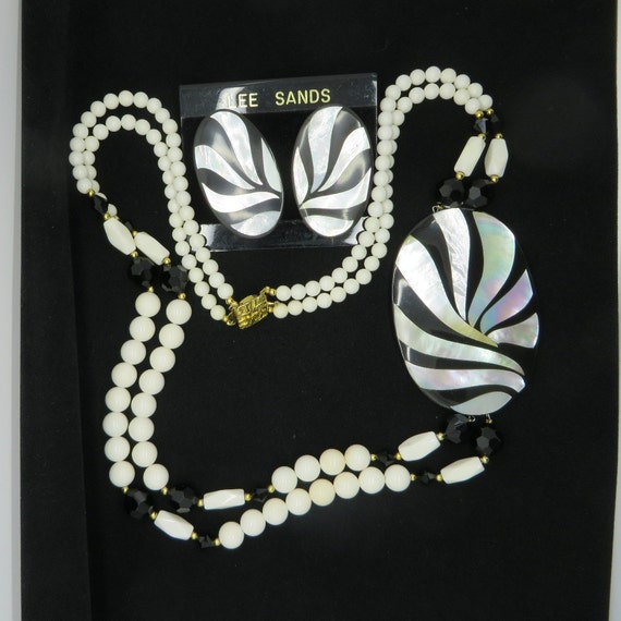 15% OFF coupon on Black & White Necklace, Earrings Set, MOP, Milk Glass Necklace, Vintage Lee Sands Demi Parure, MOP Pierced Earrings by LeesVintageJewels