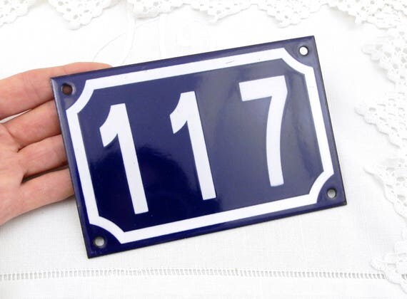 20% OFF coupon on Blue and White Enamel Metal Number Plaque 117, Vintage French House Street Enameled Sign by VintageDecorFrancais
