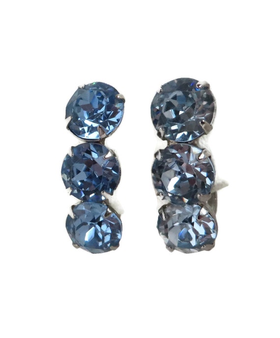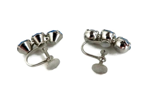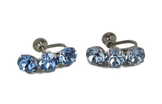 15% OFF coupon on Blue Rhinestone Earrings Vintage Silver Tone Screwback Earrings, Bridal Jewelry by LeesVintageJewels