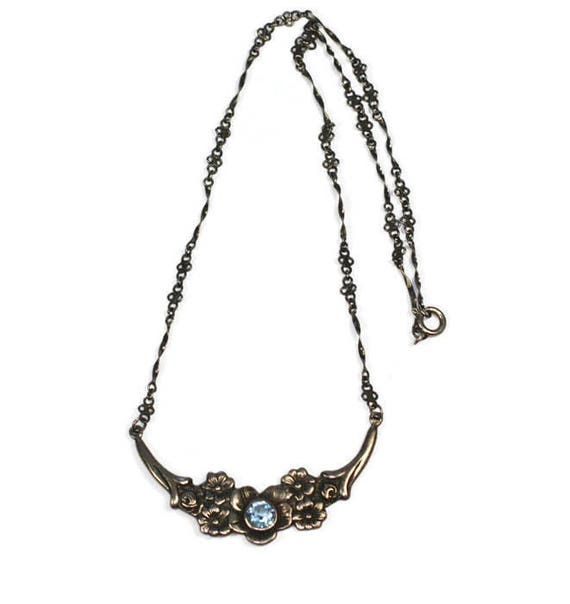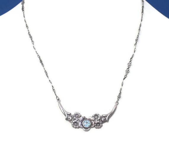 15% OFF coupon on Blue Topaz Floral Design Necklace Sterling Hallmarked Birmingham England Vintage by PastSplendors