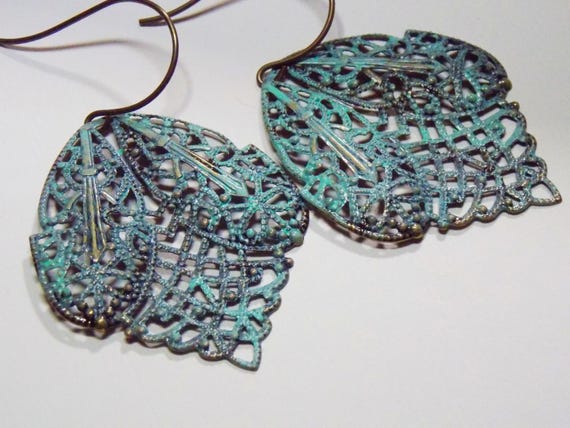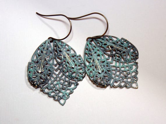 FREE SHIPPING coupon on Boho Filigree Brass Earrings Turquoise Earrings Patina Earthy Rustic Woodland Filigree Dangle Boho Brass Bohemian Earrings Jewelry by NickiLynnJewelry