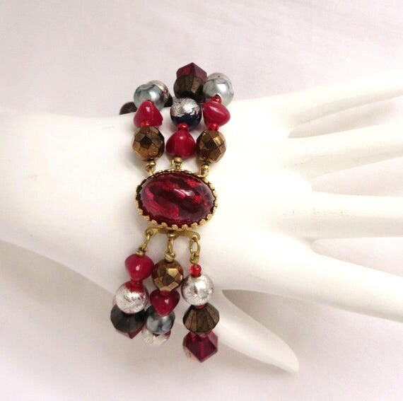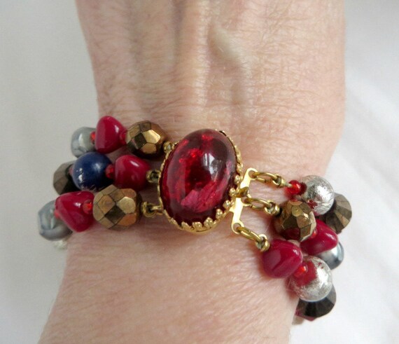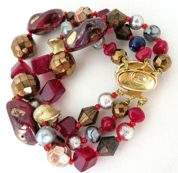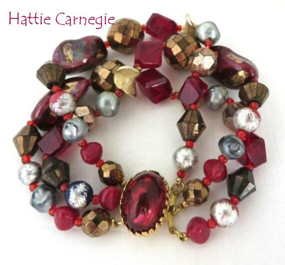 15% OFF coupon on Bracelet, Glass Bead Bracelet, Signed Hattie Carnegie Jewelry, Vintage Jewellery, Triple Strand Beaded Designer Bracelet, Gift for Her by LeesVintageJewels