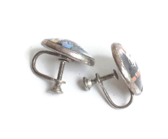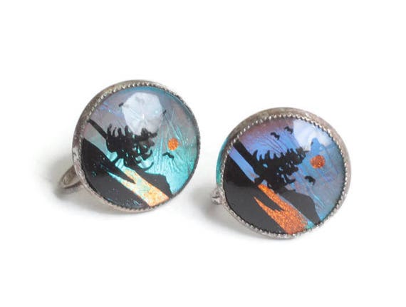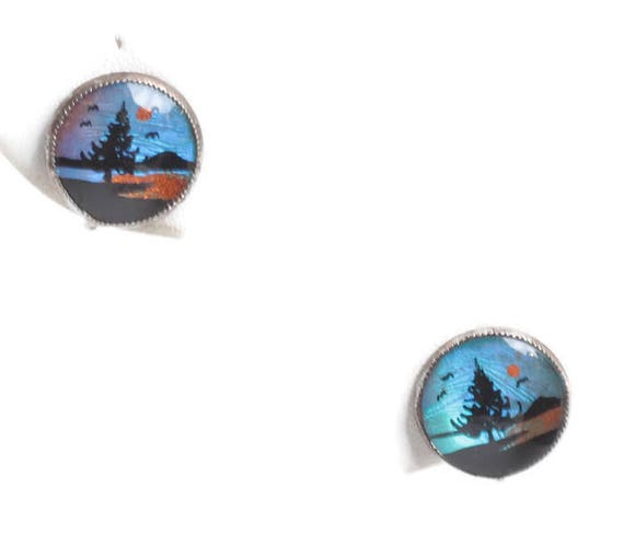 15% OFF coupon on Butterfly Wing Earrings Lake Mountain Scene Screw Back Sterling Silver Tone Vintage by PastSplendors