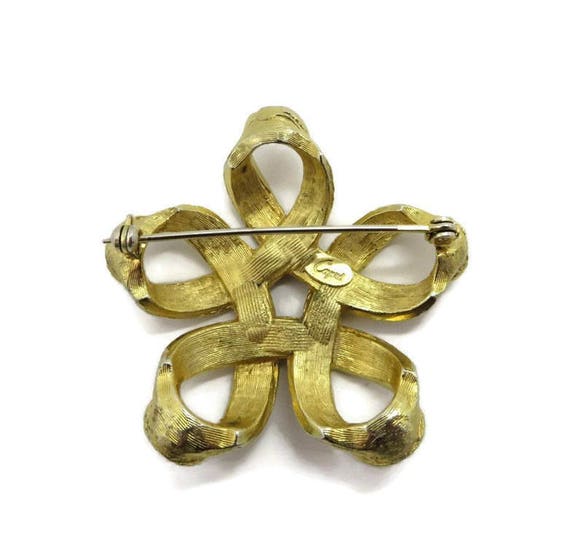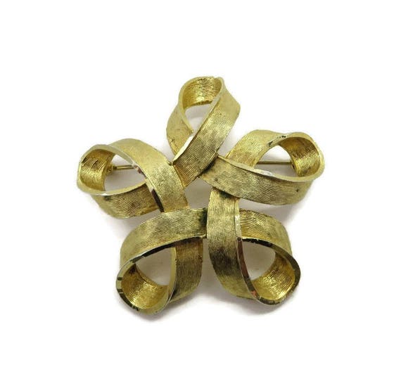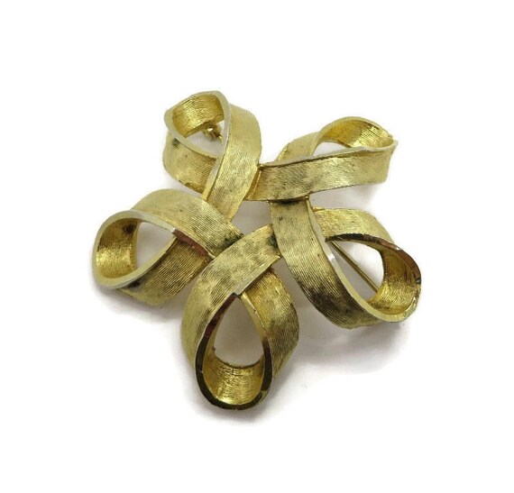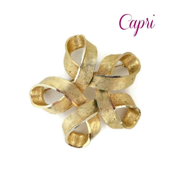 15% OFF coupon on CAPRI Brooch, Vintage Gold Tone Designer Ribbon Pin, Matte Gold Looped Brooch by LeesVintageJewels