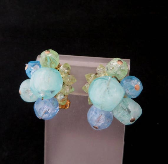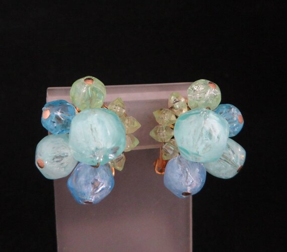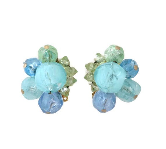 15% OFF coupon on Carnegie Cluster Bead Earrings - Vintage Pastel Lucite Beaded Clip-on Earrings, Gift for Her by LeesVintageJewels