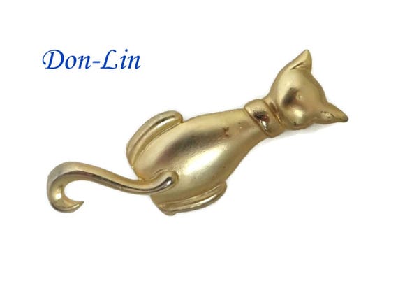15% OFF coupon on Cat Brooch, Vintage Jewelry, Don-Lin Brooch, Vintage Satin Gold Tone Kitty Pin, Signed Designer Jewelry, Perfect Gift, Gift Box by LeesVintageJewels