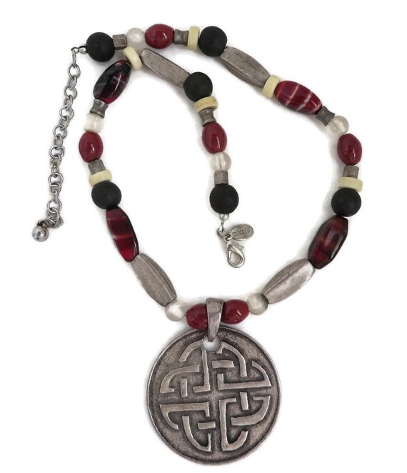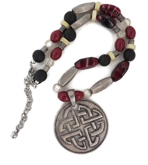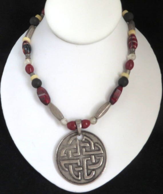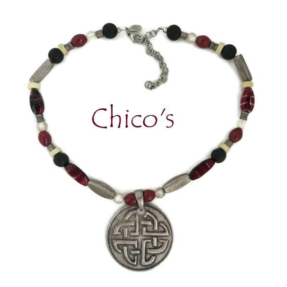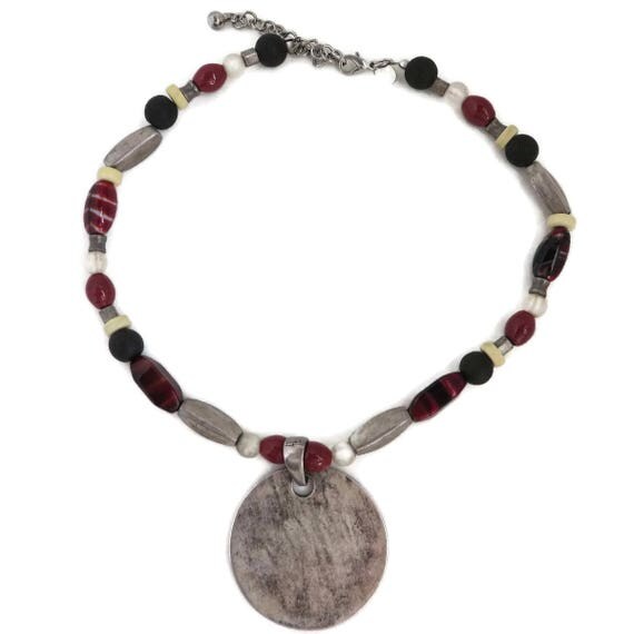 15% OFF coupon on CHICO'S Pendant Necklace, Vintage Chunky Tribal Style, Boho Beaded Silver Tone Pendant Choker Necklace by LeesVintageJewels