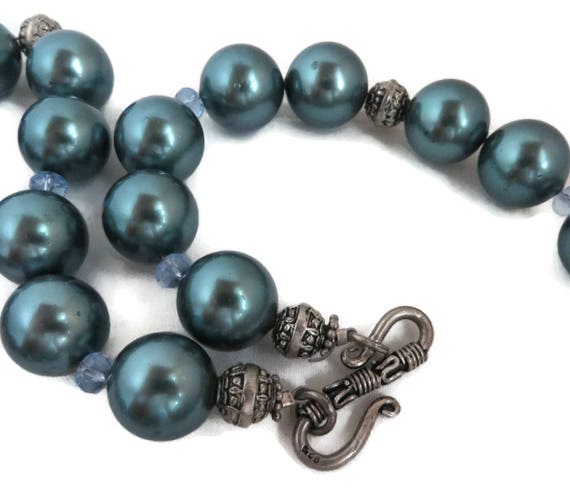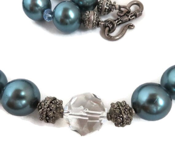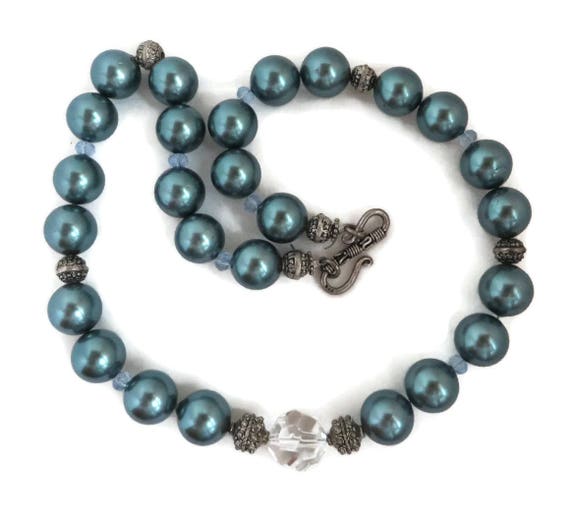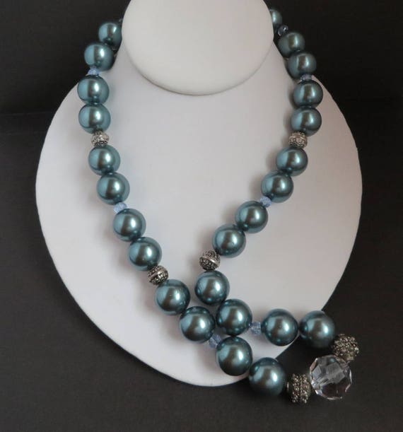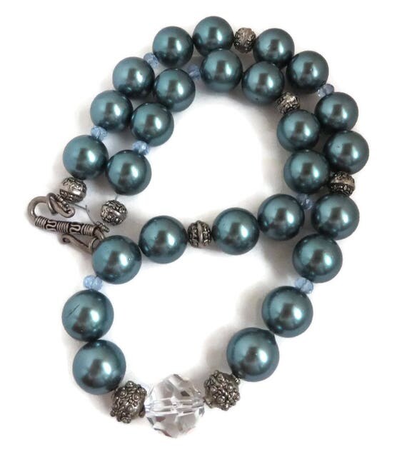 15% OFF coupon on Chunky Teal Blue Beaded Necklace, Vintage Glass Bead Necklace, Gift for Her by LeesVintageJewels