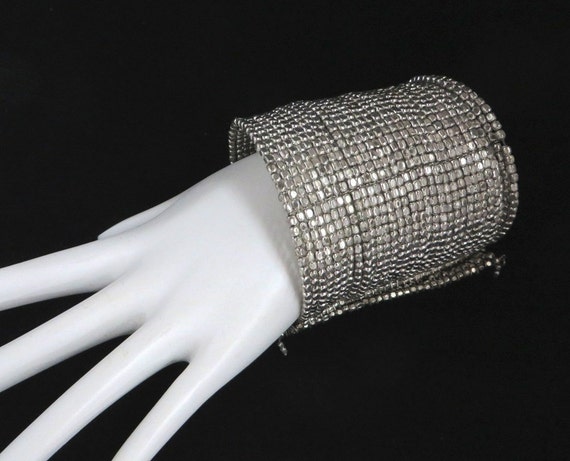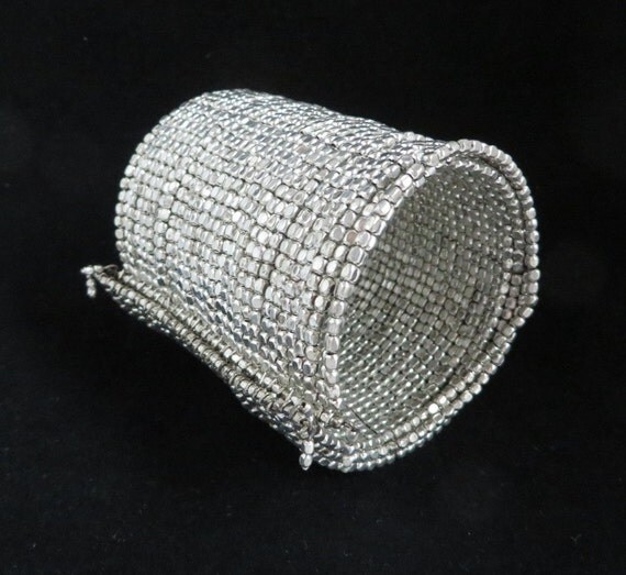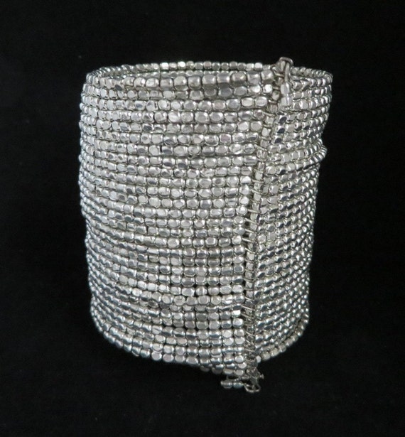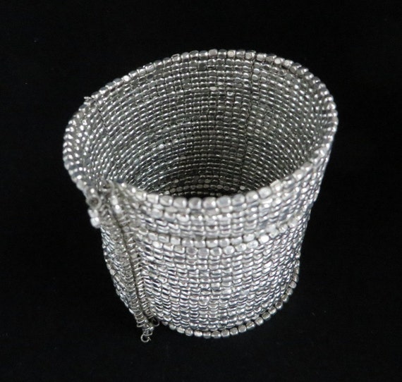 20% OFF coupon on Chunky Wide Silver Tone Beaded Cuff Bracelet