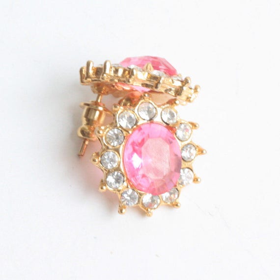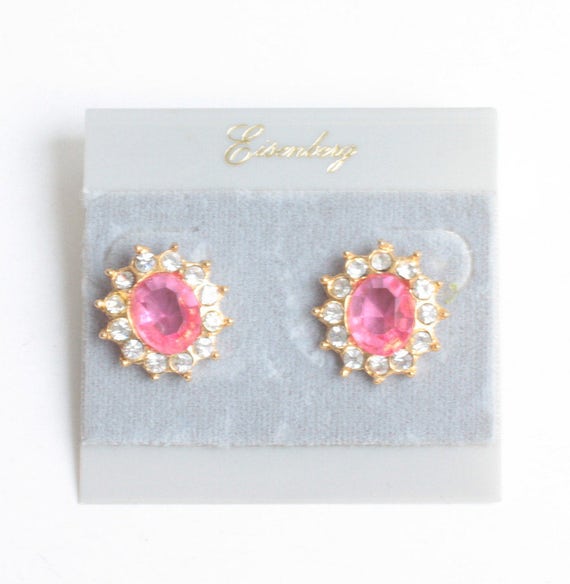15% OFF coupon on CIJ Sale Faceted Pink and Clear Rhinestone Earrings Pierced Eisenberg Original Card by PastSplendors