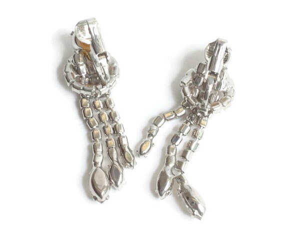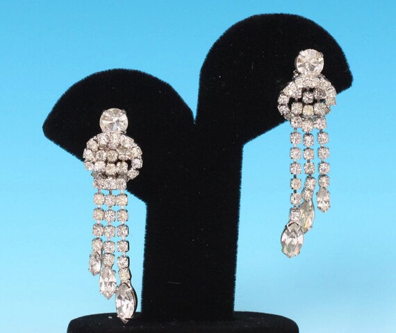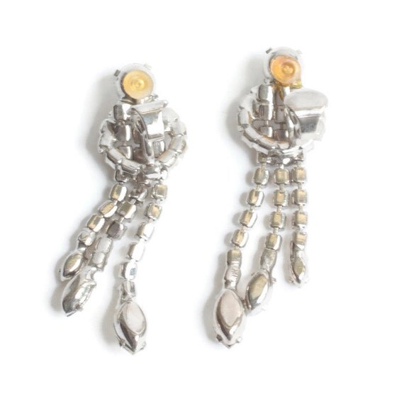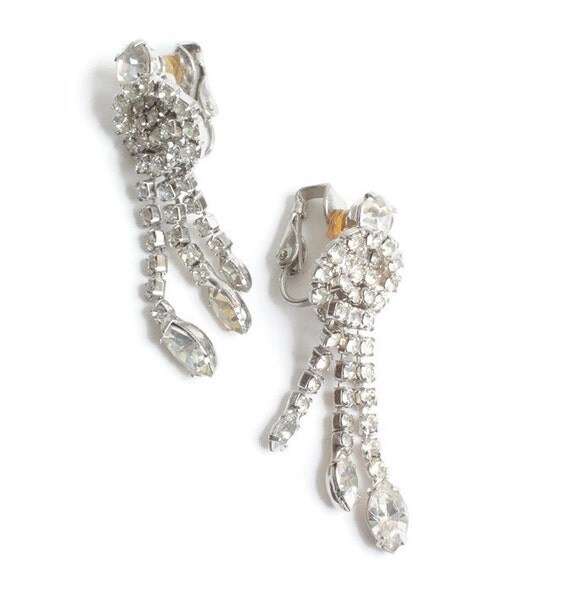 15% OFF coupon on Clear Rhinestone Dangle Earrings Circle Top Three Dangles Crystals Clip On Style Bridal Vintage by PastSplendors