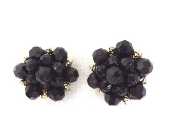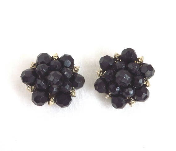 15% OFF coupon on Cluster Bead Earrings - Vintage Hong Kong Black Beaded Earrings, Gold Tone Clip-ons, 60s Jewelry, Gift for Her, Gift Boxed by LeesVintageJewels