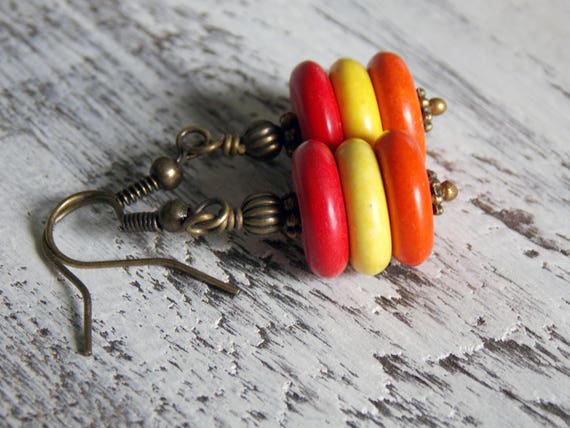 FREE SHIPPING coupon on Colorful Wood Earrings Simple Light Minimalist Red Yellow Orange Wood Disk Earrings Summer Jewelry Woodland Hippie Earthy Earrings by NickiLynnJewelry