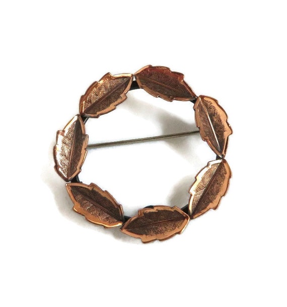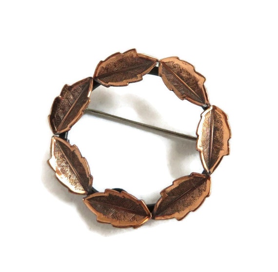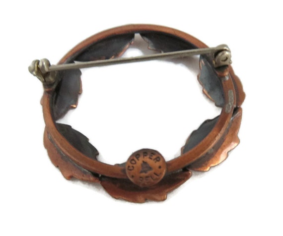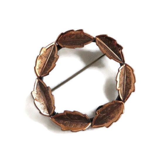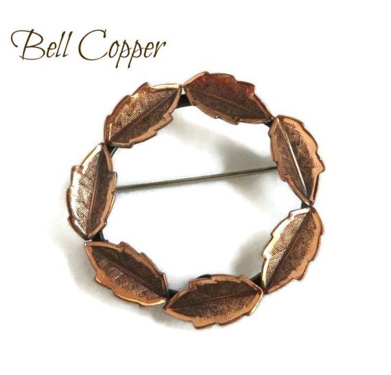 15% OFF coupon on Copper Circle Brooch, Vintage Copper Leaf Pin, Copper Wreath Brooch, Genuine Copper Jewelry, Bell Copper by LeesVintageJewels