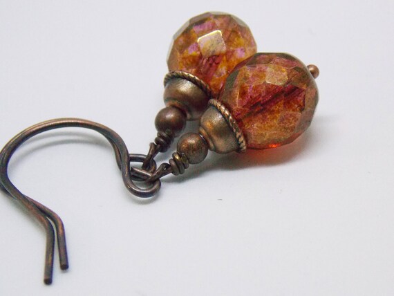 FREE SHIPPING coupon on Copper Earrings Czech Glass Burgundy Earrings Dangle Drop Earrings Boho Rustic Woodland Earrings Picasso Earrings Gift by NickiLynnJewelry