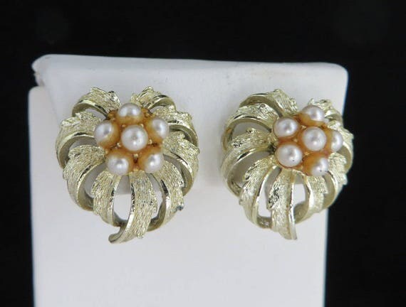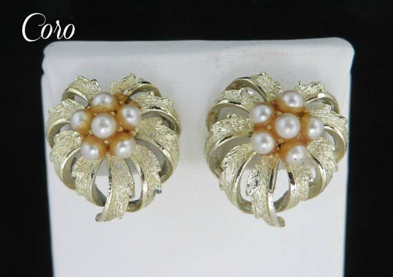 15% OFF coupon on Coro Faux Pearl Earrings, Vintage Champagne Gold Screw Back Earrings, Bridal Jewelry, Gift for Her by LeesVintageJewels