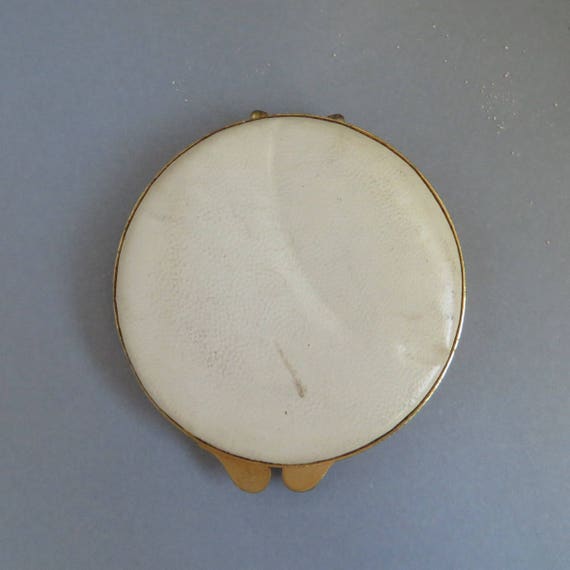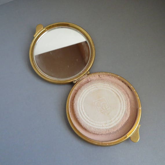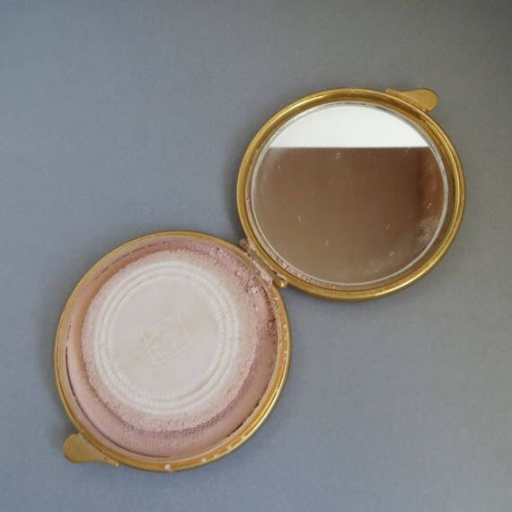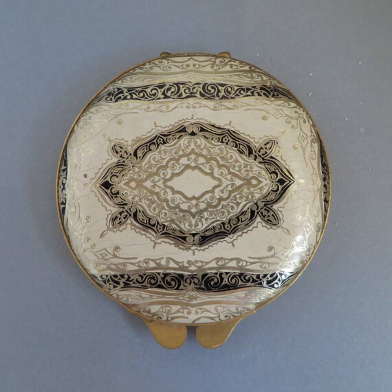 15% OFF coupon on Cover Girl Compact - Vintage Black, Cream Round Mirrored Makeup Case, Collectible Powder Compact by LeesVintageJewels