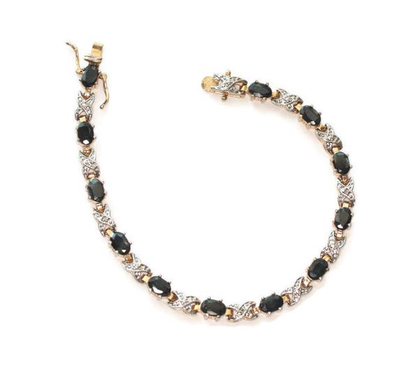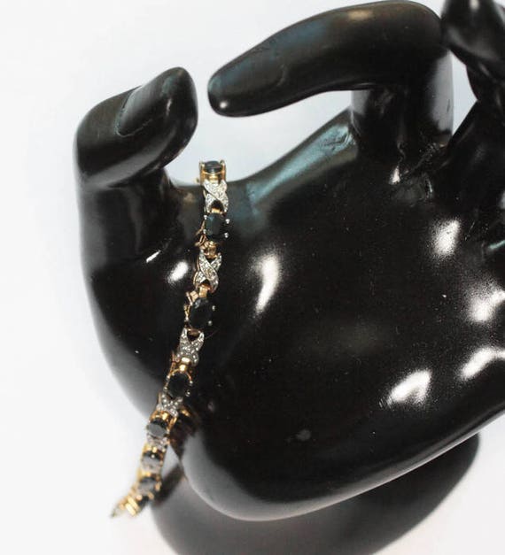 15% OFF coupon on Dark Blue Gemstone Tennis Bracelet Clear Gemstone Accents Signed China