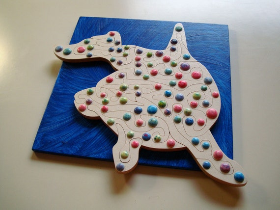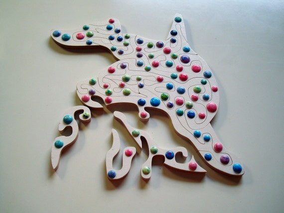 FREE SHIPPING coupon on Dolphin Puzzle Art Play Heal, Ready to hang on the wall Smart toy Abstract Challenging Gift Handmade Acrylic on Wooden Pieces, by Samo Svete by SamoSvete