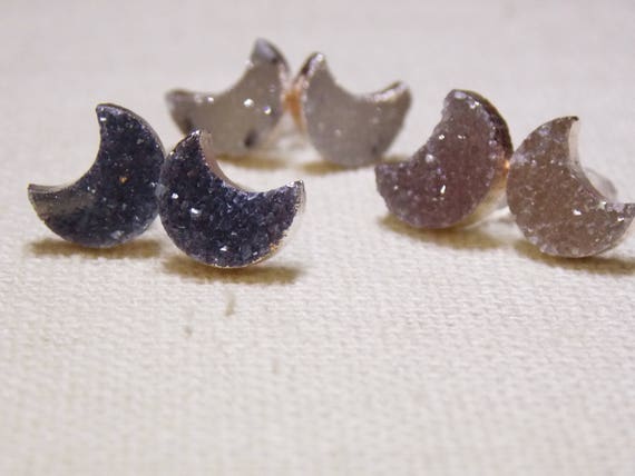 FREE SHIPPING coupon on Druzy Crescent Moon Stud Earrings, Tiny Moon Earrings, Druzy Quartz Gemstone Stud Post Earrings, Moon Earrings, Geode Earrings by NickiLynnJewelry
