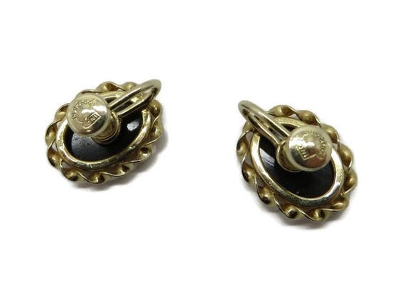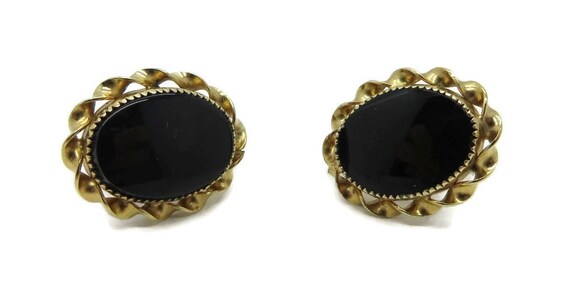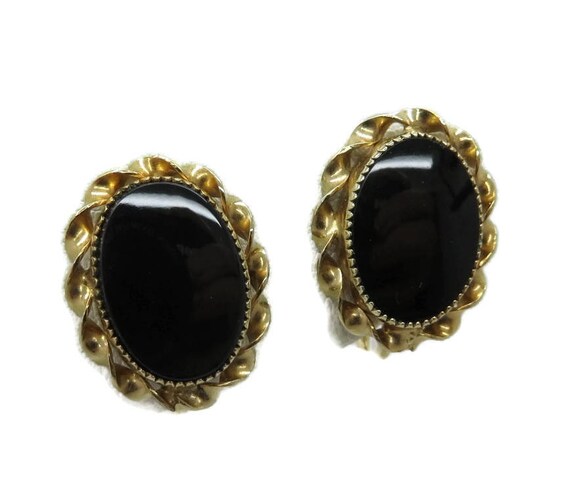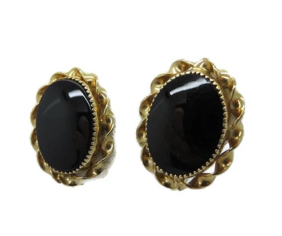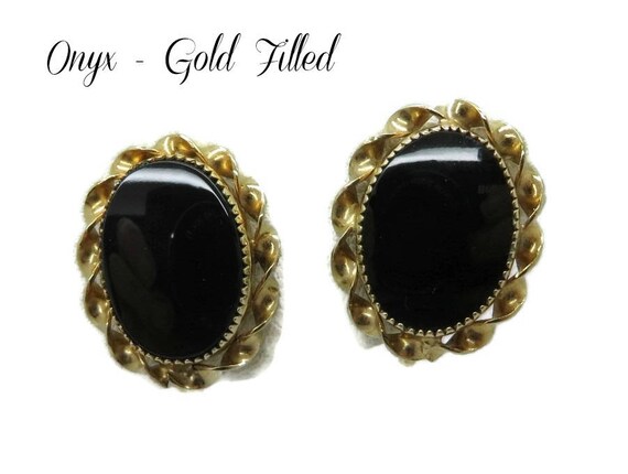 15% OFF coupon on Earrings, Black Onyx Earrings, Gold Filled Earrings Vintage 1/20 12K GF Faux Onyx Screw Back Earrings, Gift for Her by LeesVintageJewels