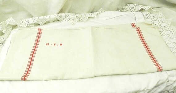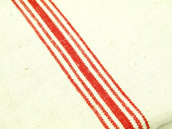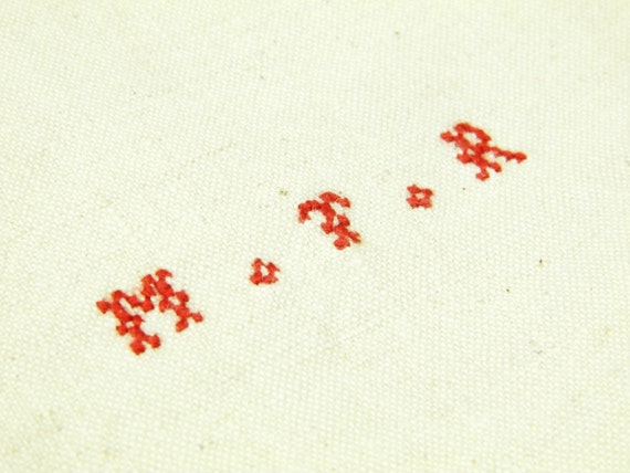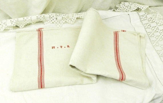 20% OFF coupon on Excellent Condition Large Antique French Ecru Linen Tea Towel with Woven Red Stripes and 3 Small Red Cross Stitch Monogram M T R / Cottage by VintageDecorFrancais