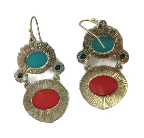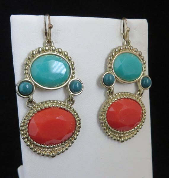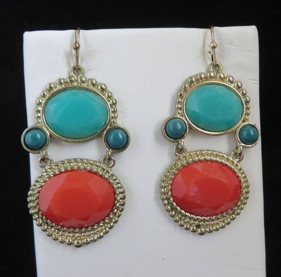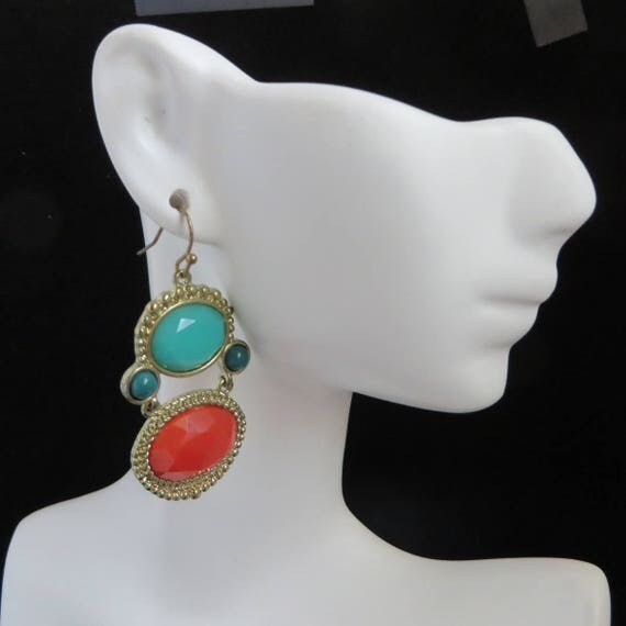 15% OFF coupon on Faux Turquoise, Coral Earrings, Vintage Boho Dangling Earrings, Pierced Beaded Dangles, Hippie Jewelry by LeesVintageJewels