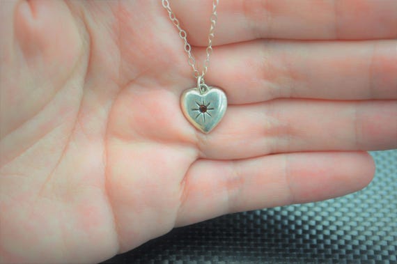 10% OFF coupon on Garnet Mothers Necklace, Silver Heart Necklace, Garnet Necklace, Dainty Necklace, Heart Necklace, Mothers Necklace, January Birthstone by Alaridesign