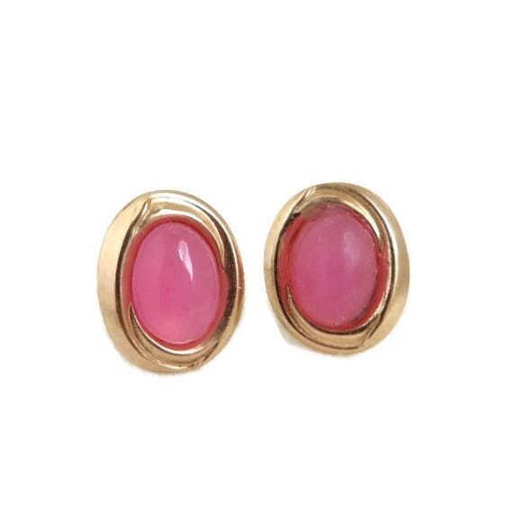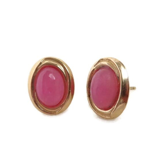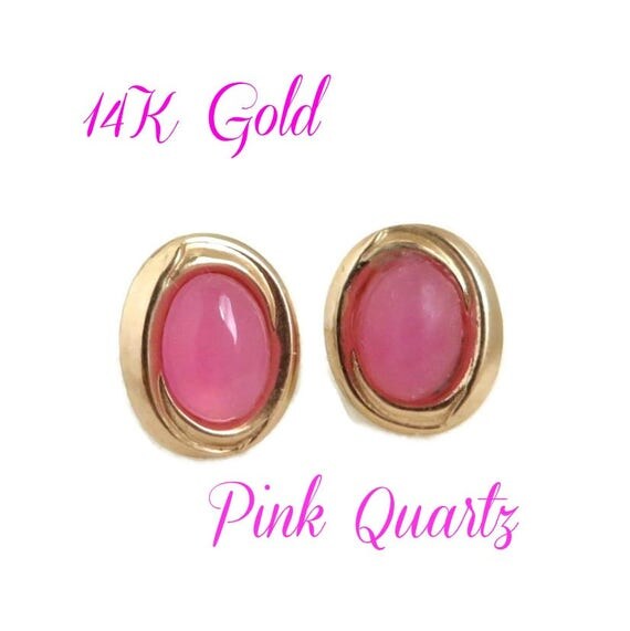 15% OFF coupon on Gold Pierced Earrings, 14K Gold, Pink Stone Earrings - Vintage Oval Quartz Stud Earrings by LeesVintageJewels