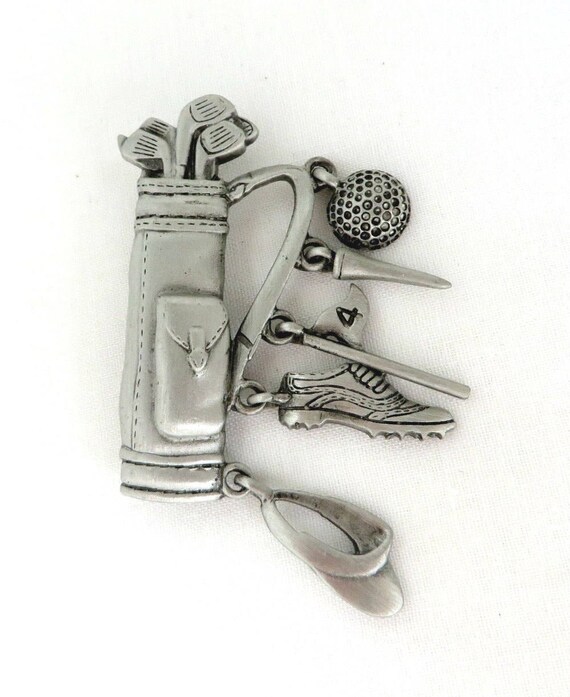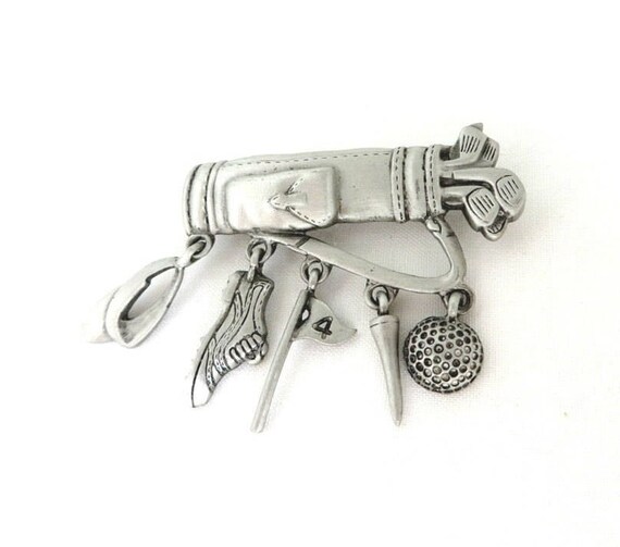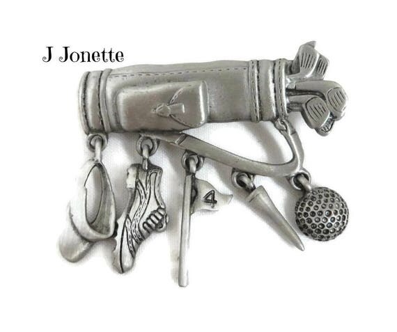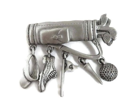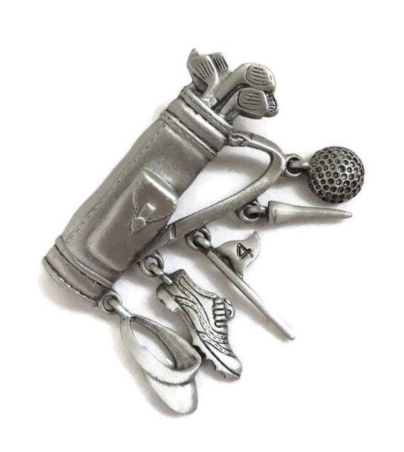 15% OFF coupon on Golf Bag Brooch, Pewter Pin, Vintage Signed J Jonette Pin, Dangling Golf Accessories, Golfer Gift by LeesVintageJewels