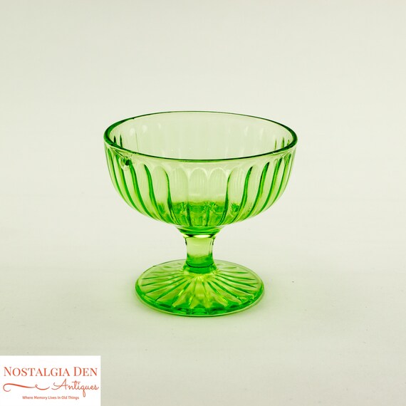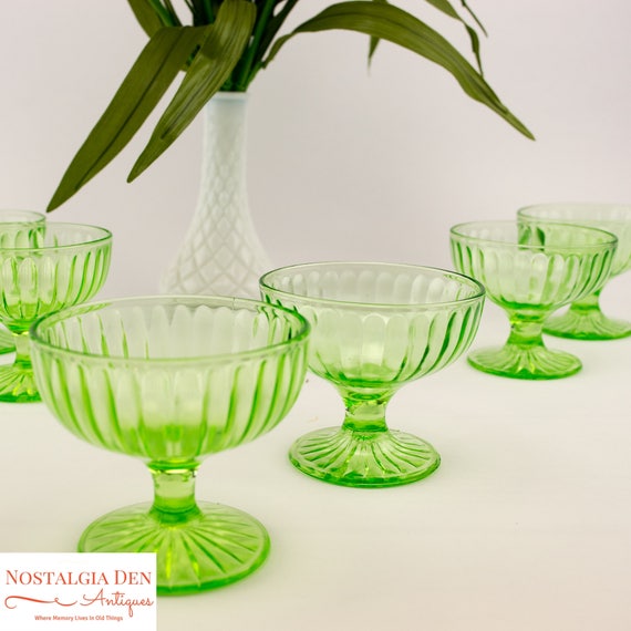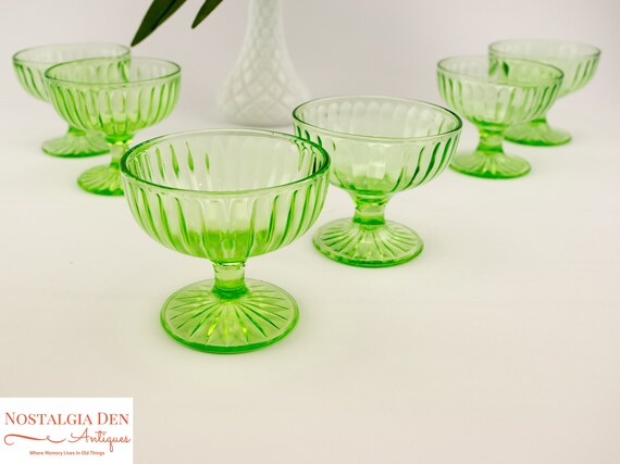 15% OFF coupon on Green Depression Glass | Uranium Glass | Dessert Dishes | Glass Sherbet Side Dishes | Set Of 6 by NostalgiaDenClassics