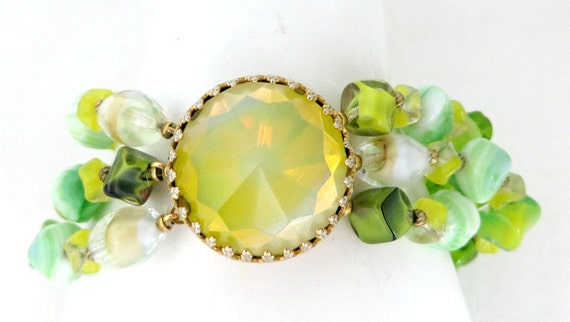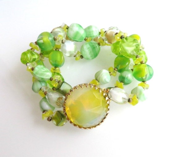 15% OFF coupon on Hattie Carnegie Bracelet, Vintage Bracelet, Green Crystal Bracelet, Three Strand Bracelet, Signed Carnegie Bracelet, FREE SHIPPING by LeesVintageJewels