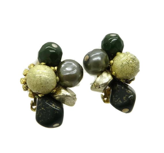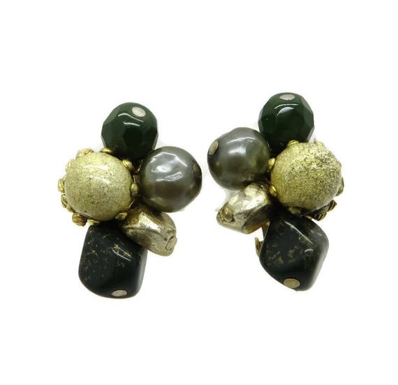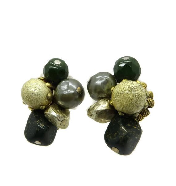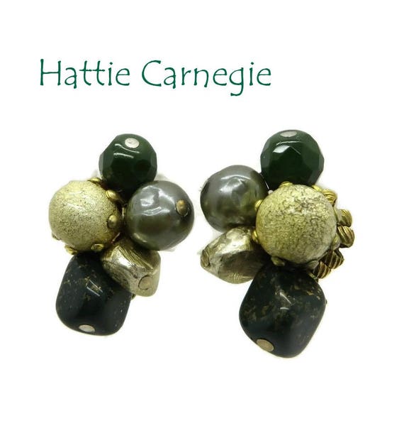 15% OFF coupon on Hattie Carnegie Green Bead Earrings, Vintage Cluster Clip-on Earrings, Signed Carnegie Jewelry by LeesVintageJewels