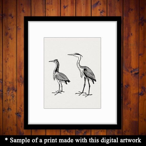 15% OFF coupon on Heron and Bittern Birds Digital Image Download Bird Graphic Printable Vintage Clip Art Jpg Png Eps HQ 300dpi No.1037 by VintageRetroAntique