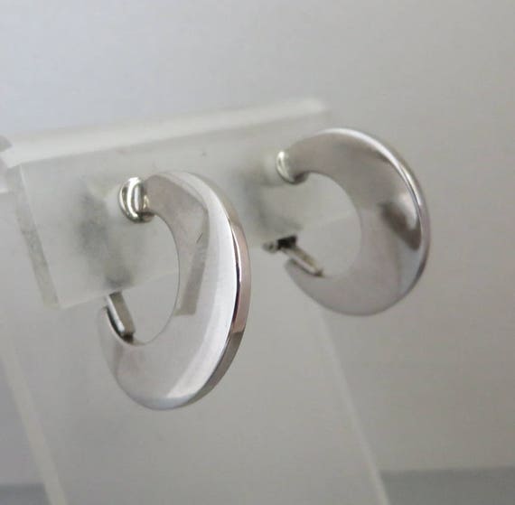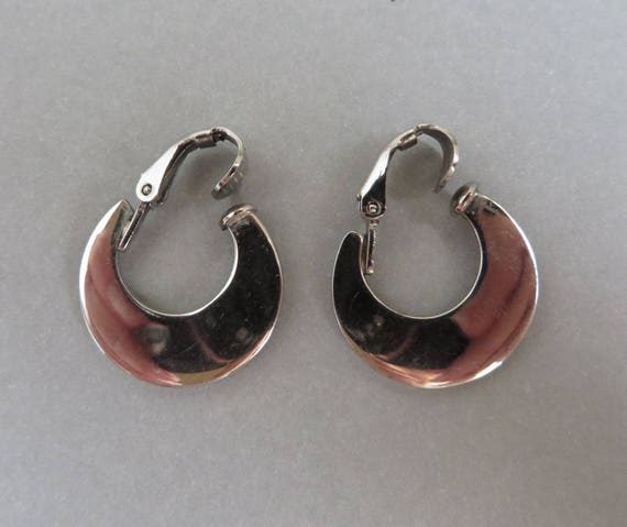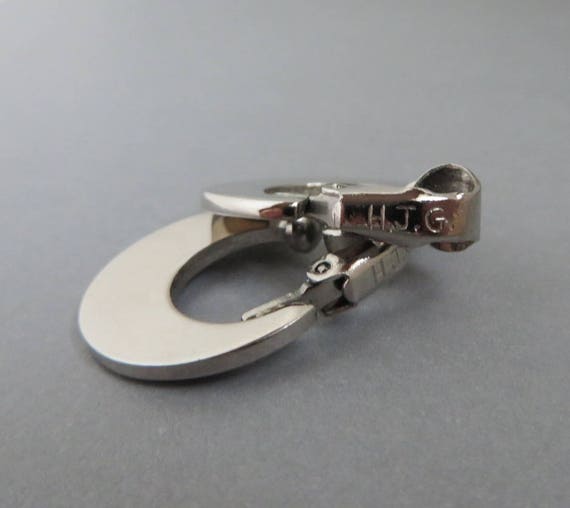 30% OFF coupon on HJG Hoop Earrings, Silvertone Designer Hoops, Signed H.J.G. Clip-on Earrings by LeesVintageJewels