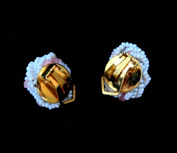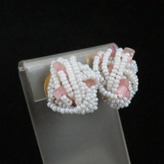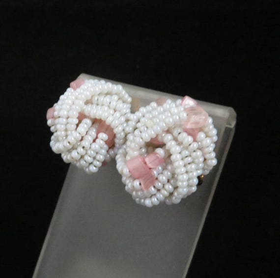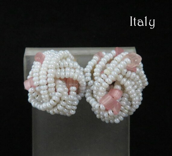 15% OFF coupon on Italian White Bead Earrings - Vintage White & Pink Beaded Clip-on Earrings, Made in Italy, Gift for Her, Gift Boxed by LeesVintageJewels