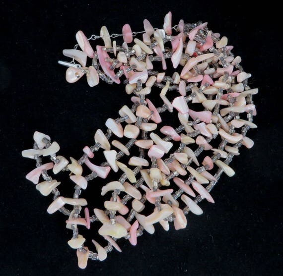 15% OFF coupon on Japan Shell Necklace, Vintage MOP Multi-Strand Natural Pink Shell Island Style Necklace, Gift for Her by LeesVintageJewels