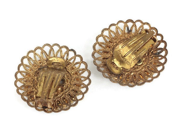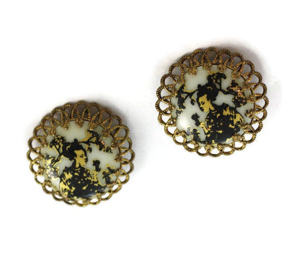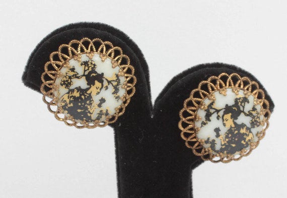 15% OFF coupon on Japanese Geisha Earrings Cherry Blossoms Black and Gold W Germany Clip Style by PastSplendors