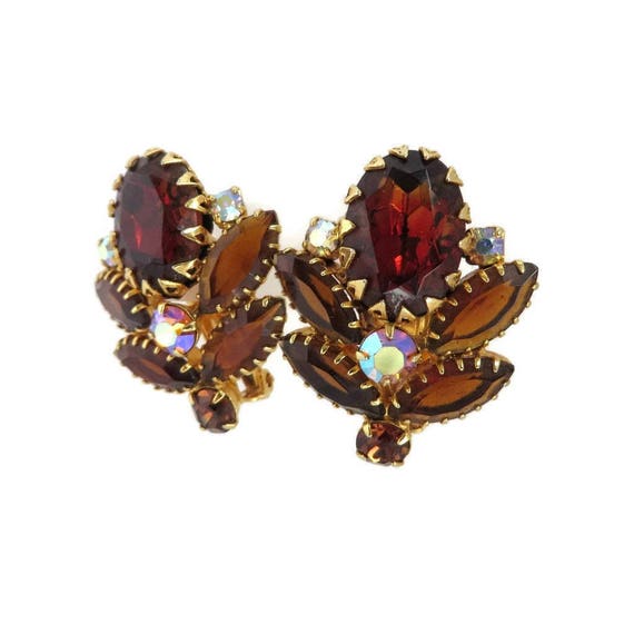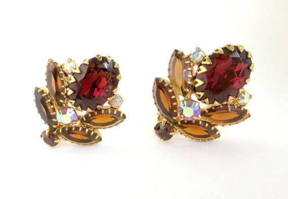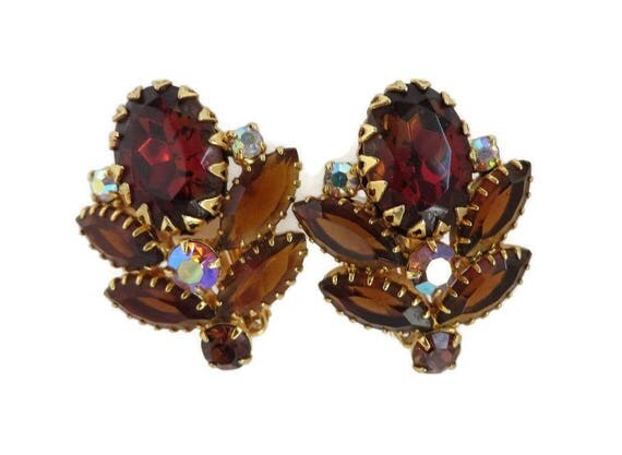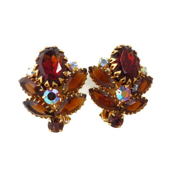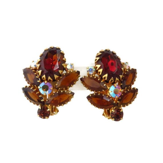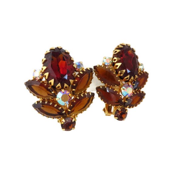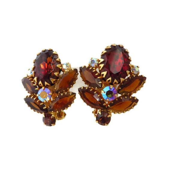 15% OFF coupon on Juliana Amber Rhinestone Earrings | Vintage D&E Verified | Amber, Cognac, AB Rhinestone Clip-ons | Bridal Jewelry by LeesVintageJewels