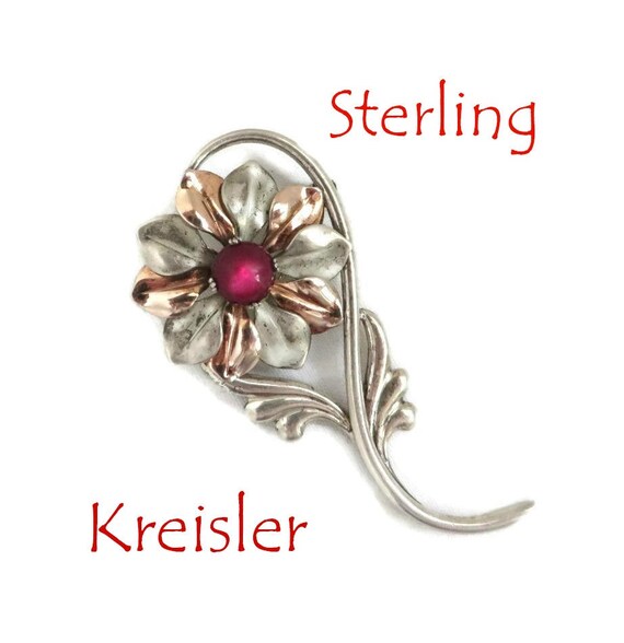 15% OFF coupon on Kreisler Silver Flower Brooch, Vintage Signed Designer Sterling Silver Pin, Mid Century Jewelry, Perfect Gift, Gift Box by LeesVintageJewels